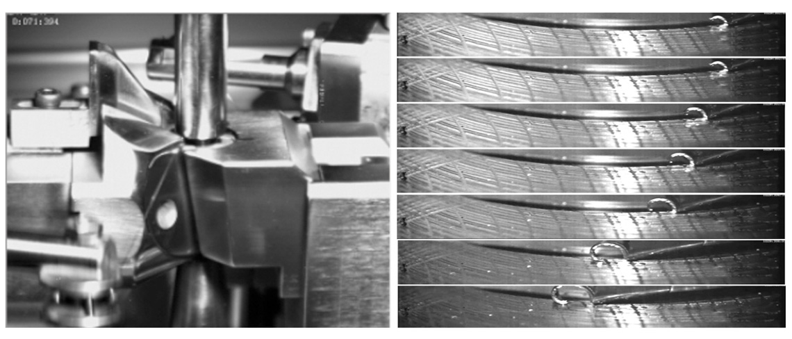 在超高速進行工作時,有用現有的刀具進行超高速切削,從而大幅度地提高切削效率。高速切削時,切削變形需要消耗的能量變為熱能,切削速度越高,產生的熱能也越大,所以需要切屑帶走大部分的熱量。因此需要對切削角度的變化重點研究,從而減少切削熱。高速攝像可以實現高速切削的拍攝從而觀測到整個切削過程中切削角的變化和切屑如何被帶出,從而建立整個切屑成形的實驗模型,研究不同刀具在切削過程中的穩定性、磨損等。